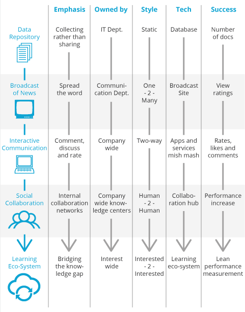 A last note, any corporation, big or small can only be as collaborative as its culture allows! Don’t rush to move your intranet to a Social Collaboration site or Learning-Ecosystem if you are still in stage one.